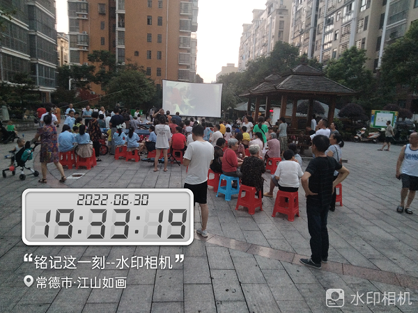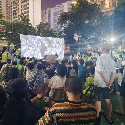 露天播放電影的形式,自由隨意的觀影氣氛,讓觀影人員更真切的體驗(yàn)艱苦奮斗的那個(gè)年代,革命先輩的付出與奮斗。放映活動(dòng)現(xiàn)場(chǎng)反響熱烈,夜幕降臨,現(xiàn)場(chǎng)座無(wú)虛席。業(yè)主們有的自帶板凳、有的駐足站立、有的直接席地而坐。物業(yè)工作人員精心布置著場(chǎng)地,還為業(yè)主準(zhǔn)備觀影小零食,業(yè)主們嗑著瓜子、吃著冰棍,都全神貫注地融入到劇情里,仿佛身臨其境。